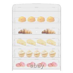 360° Visible : The high-transparency acrylic offers a clear and comprehensive view of the items on display, attracting hungry and potential customers, increasing their interest and engagement, and providing a captivating and informative experience. Neat Storage: This large-size acrylic display case(18.78.4624.4 inches) with 5 tiers and a wide top space helps store cakes, cookies, figurines, coins, candies, cupcakes, etc. In a classified way, making your home or store tidier and bringing you a neat lifestyle. Keep Fresh: This display case with door design and sealed structure is conducive to blocking dust and balancing moisture, thus maintaining the freshness and taste of food to the maximum extent. Easy to Assemble&Disasssemble: Complete accessories, a simple structure, and a detailed installation diagram allow you to quickly complete the installation without drilling.