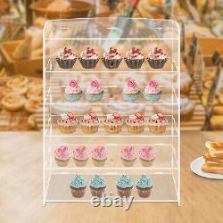 High-quality Material: The premium acrylic with high hardness and rust resistance is less prone to breakage and deformation, ensuring a long service life. 360° Visible : The high-transparency acrylic offers a clear and comprehensive view of the items on display, attracting hungry and potential customers, increasing their interest and engagement, and providing a captivating and informative experience. Neat Storage: This large-size acrylic display case(18.78.4624.4 inches) with 5 tiers and a wide top space helps store cakes, cookies, figurines, coins, candies, cupcakes, etc. In a classified way, making your home or store tidier and bringing you a neat lifestyle. Keep Fresh: This display case with door design and sealed structure is conducive to blocking dust and balancing moisture, thus maintaining the freshness and taste of food to the maximum extent.Easy to Assemble&Disasssemble: Complete accessories, a simple structure, and a detailed installation diagram allow you to quickly complete the installation without drilling. You can easily disassemble and store it without taking up much space when not in use. Effortless Cleaning: The acrylic material, smooth surface, and simple structure allow you simply clean it with a wet cloth or water.