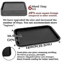 The Miniatures Storage set includes six black metal trays, one removable trolley bar, four removable wheels, four stacking pins, eight pre-existing hanging clasps, one pre-existing cord hole, and one pre-existing lock hole. Lights, magnets, luggage locks, and miniatures on display are not included.